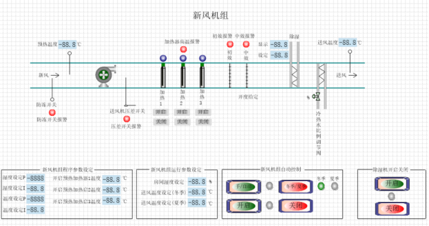 2.新风机组、组空机组、主机机组、除湿机组、水泵机组实现联网控制,整个系统可做到一键启停;